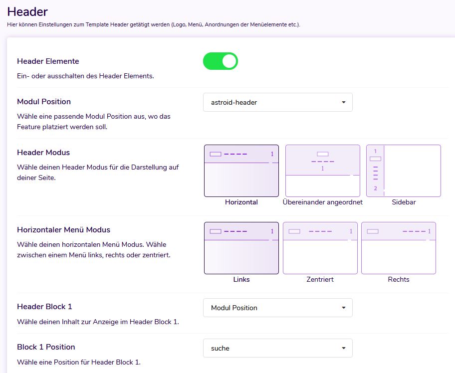 You have several options to choose from and you can easily switch between the headers in the Layout Manager.