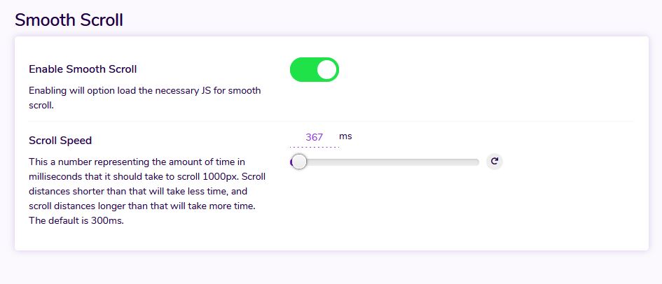 If you activate Smooth Scroll, the file Smooth-Scroll.js is loaded, which enables so-called on-page designs to be created.