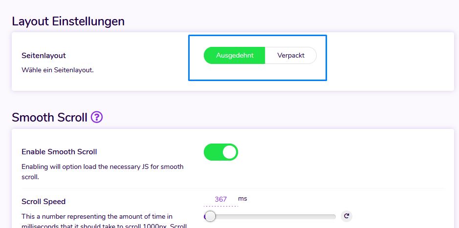 If you activate Smooth Scroll, the file Smooth-Scroll.js is loaded, which enables so-called on-page designs to be created.