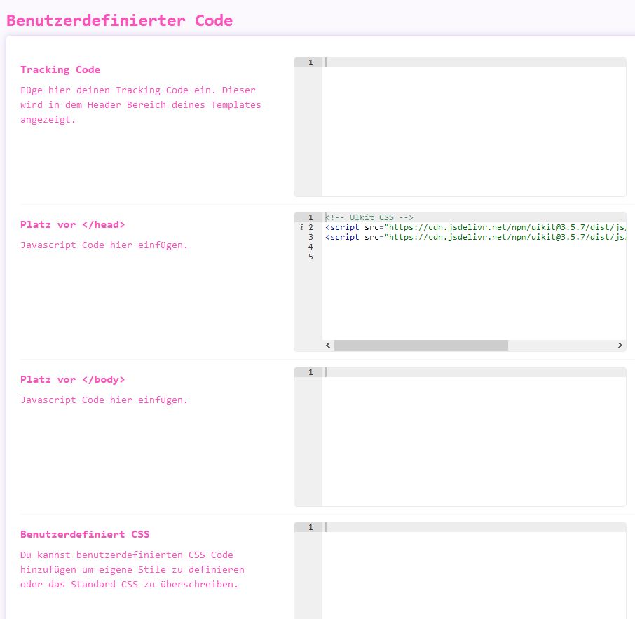 se your own custom code like CSS, JS, meta tags, links, and verification codes.